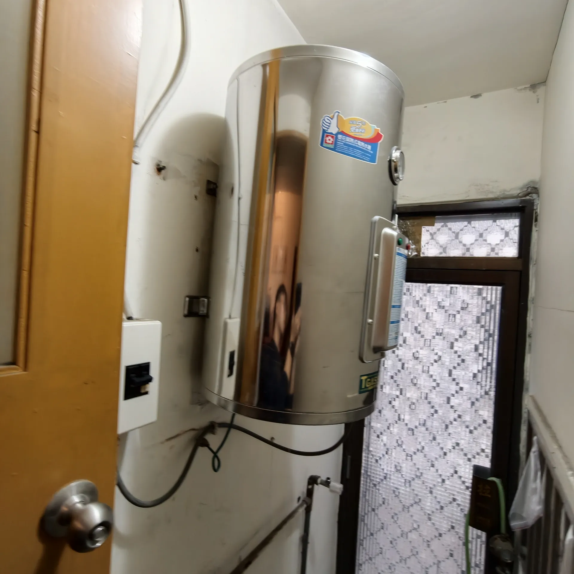 本案位於高雄左營。屋主原本使用櫻花 15 加侖電熱水器,使用多年後希望換新機,並希望加裝除垢濾心過濾水質、延長壽命。
