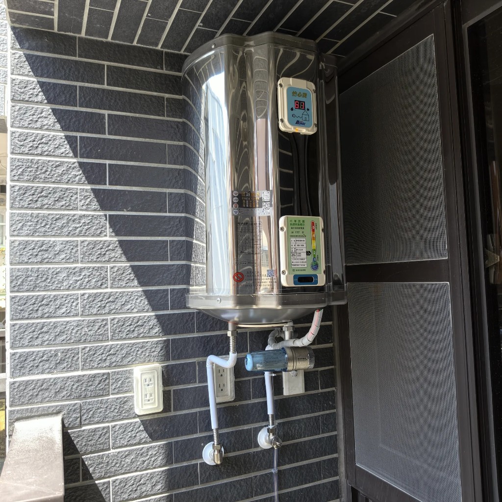 依口碑轉介紹的需求,現場評估後採用怡心牌 37L 電熱水器,並加裝海爾 T5 除垢濾心,兼顧供熱穩定與長期效率。