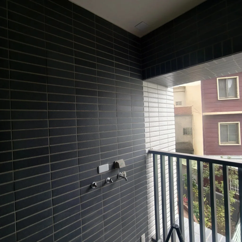 ▲ 陽台牆面預留水電管線與插座,尚未安裝熱水器。
