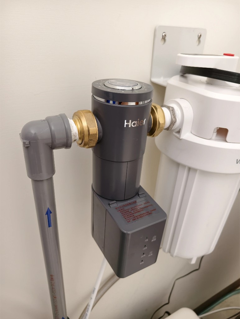 - 第一道:海爾智能前置過濾器 HR-PWP-6T— 過濾泥沙、鐵鏽等大顆粒,6T/H 大流量,保護後端設備。