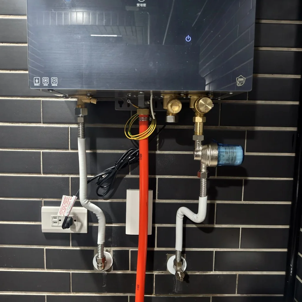 本案位於高雄鼓山區美術南三街的仰德美術館住宅建案。屋主追求頂級沐浴體驗,選擇海爾 SA2-20L 五段火排渦輪瀑布洗抑菌熱水器,搭配現代化深色磁磚衛浴空間,打造高質感居家生活。